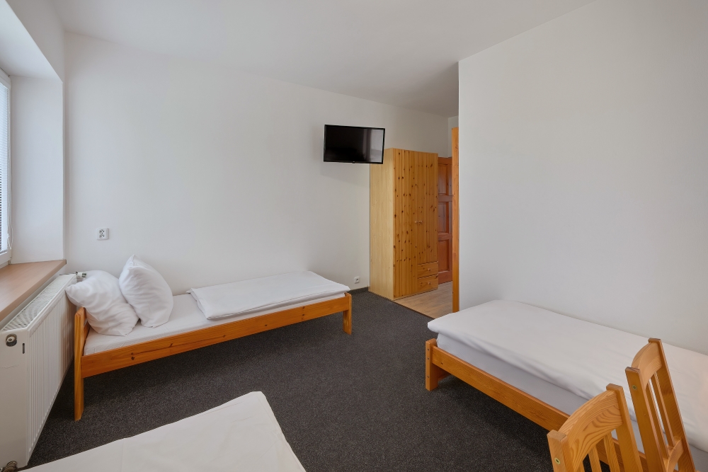 Prostorný pokoj se třemi lůžky a vlastní koupelnou se sprchou. K dispozici je televize, dostatek úložného prostoru a bezplatné Wi-Fi. Parkování je možné přímo u penzionu, je zde také terasa k posezení a možnost využití úschovny kol. Snídaně je k dispozici za poplatek.