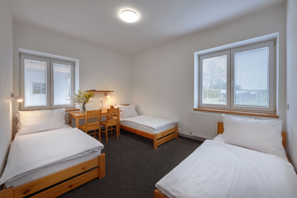 Prostorný pokoj se třemi lůžky a vlastní koupelnou se sprchou. K dispozici je televize, dostatek úložného prostoru a bezplatné Wi-Fi. Parkování je možné přímo u penzionu, je zde také terasa k posezení a možnost využití úschovny kol. Snídaně je k dispozici za poplatek.