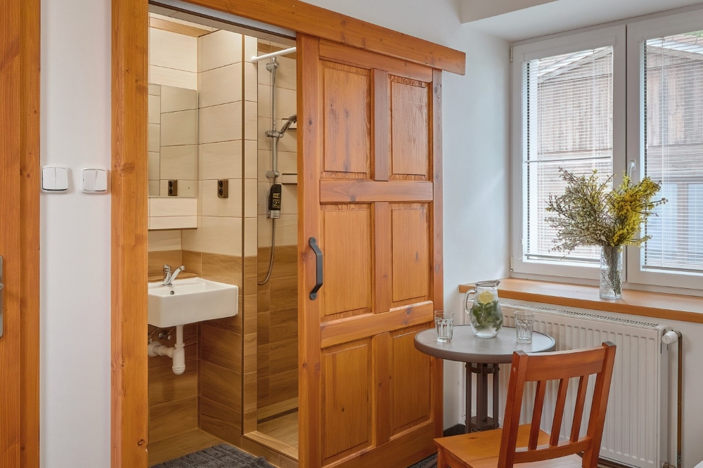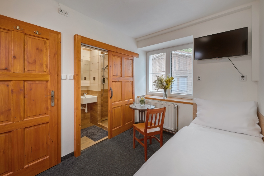 Prostorný pokoj se třemi lůžky a vlastní koupelnou se sprchou. K dispozici je televize, dostatek úložného prostoru a bezplatné Wi-Fi. Parkování je možné přímo u penzionu, je zde také terasa k posezení a možnost využití úschovny kol. Snídaně je k dispozici za poplatek.